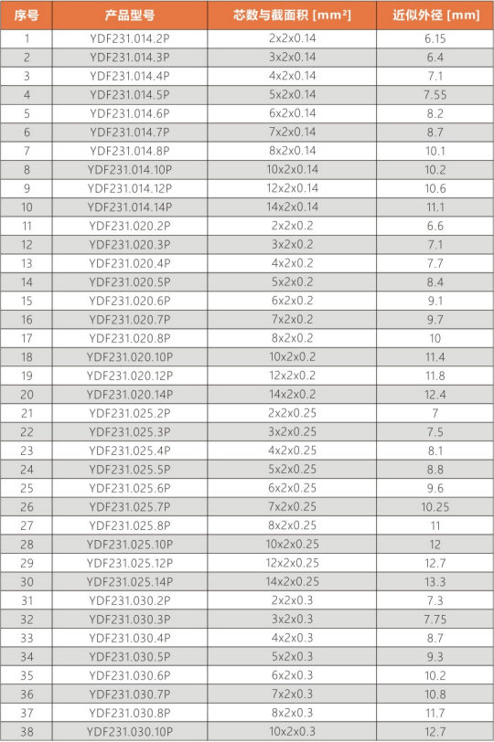 彎曲半徑 : 非拖鏈內(nèi)運(yùn)動(dòng):10.0X電纜外徑