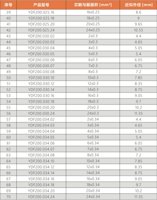 彎曲半徑 : 非拖鏈內(nèi)運(yùn)動:10.0X電纜外徑